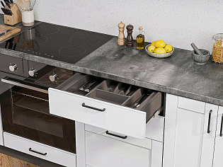 Заказывала этот гарнитур в классическом черно-белом цвете. Очень удобно, что можно подобрать шкафы, которые понравились и под размер своей кухни. Оплачивала картой онлайн, доставка была транспортной компанией и без задержек.
