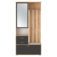 Основными составными компонентами представленных вариаций служат полки, шкафы, вешалки, зеркала, сиденья и комоды.