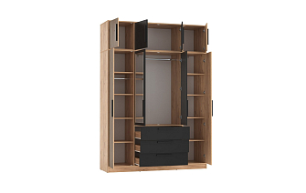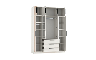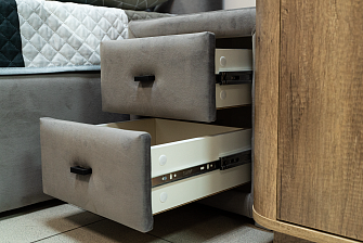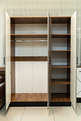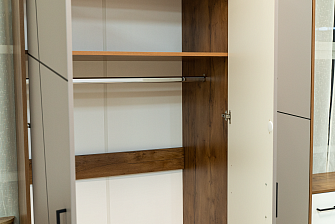 Представленные гарнитуры — это продуманные дизайнерские решения, совмещающие в себе место для сна и гардеробную. Мебель имеет не только приятный внешний вид, но и характеризуется высоким качеством. Фурнитура при регулярном использовании выдерживает внушительные нагрузки. Отмечается легкий ход механизмов, удобный захват ручек.
