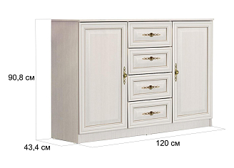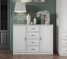 В комплект также входят комод, столик для хранения косметики, зеркало, пуфик. В виде дополнения используются полочки, секции и ниши.